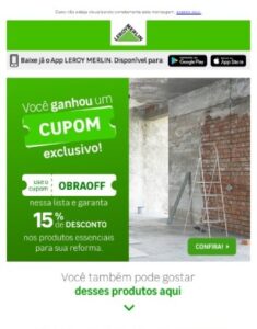 O exemplo de copywriting para vendas abaixo é de um e-mail marketing enviado pela Leroy Merlin aos leads que deixaram um carrinho abandonado.